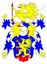 V modrém štítě je na červeném trojvrší zlatý gryf držící v pařátech červený šíp. Na štítě spočívá kolčí přílba s modro – zlatými přikrývadly a s točenicí týchž tinktur. Klenotem je rostoucí gryf ze štítu.