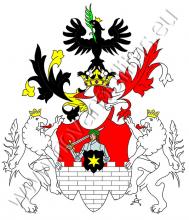 V červeném štítě stříbrná zeď, zpoza které vyrůstá obrněný muž. Na hlavě má zelený vavřínový věnec, v pravici drží nahý meč, v levici pavézu, na níž se vidí zlatá hvězda. Na štítě spočívá korunovaná kolčí přílba s černo-zlatými a červeno-stříbrnými přikrývadly. Klenotem, je černá, zlatě korunovaná orlice držící v zobáku palmovou ratolest. Štítonoši jsou dva stříbrní, zlatě korunovaní lvi.