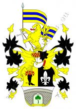 Dělený štít, nahoře polceno. Vpravo ve zlatém poli doleva černá holínka se zlatou ostruhou, z níž nahoře tryská krev. Vlevo je v černém poli stříbrná lilie. Ve spodním poli stojí ve vodě most, uvnitř jehož oblouku je zalaný trojlístek. Na štítě stojí korunovaná turnajská přílba s černo-zlatými přikrývadly. Klenotem je rostoucí dvojocasý zlatý lev držící v pravé tlapě zlatý pěchotní praporec se dvěma modrými břevny, jehož ratiště je v půli přelomeno, v levé stříbrný kříž.