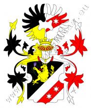 Šikmo dělený štít. Nahoře v černém je rostoucí zlatý lev držící v pravé tlapě květ šafránu. Dole ve stříbře je červené šikmé břevno a na něm dvě stříbrné hvězdy. Na štítě spočívá korunovaná kolčí přílba s černo – zlatými a červeno – stříbrnými přikrývadly. Klenotem jsou dvě rozevřená křídla, pravé šikmo dělené černo – zlatě, levé stříbrné s červeným šikmým břevnem se stříbrnou hvězdou.