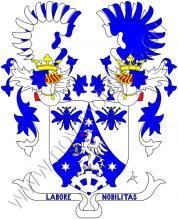Ve stříbrném štítě modrá špice provázená v každém horním poli modrou včelou. Ve špici stojí na ozubeném kole vycházejícím z paty štítu gryf s červeným jazykem držící v předních spárech vřeteno s navinutou nití, který je provázen třemi hvězdami (1:2) - vše stříbrné. Na štítě stojí dvě korunované turnajské přílby s modro-stříbrnými přikrývaly. Klenotem jsou na každé přílbě dvě zavřená křídla – na pravé přední stříbrné, zadní modré, na levé obráceně. Pod štítem je stříbrná páska s modrým heslem Labore nobilitas.