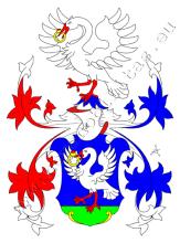 V modrém štítě je na zeleném trávníku stříbrná labuť s červenou zbrojí držící v zobáku zlatý prsten s rubínem. Na štítě spočívá kolčí přílba s červeno – stříbrnými a modro – stříbrnými přikrývadly. Klenotem je labuť ze štítu.