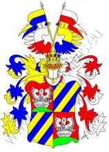 Čtvrcený štít. V prvním a čtvrtém červeném poli sedí na zeleném pahorku ve stříbrném hnízdě stříbrný pelikán krmící své mladé vlastní krví. Druhé a třetí pole je pětkrát modro-zlatě šikmo dělené. Na štítě stojí korunovaná turnajská přílba s modro-zlatými a červeno-stříbrnými přikrývadly. Klenotem jsou dvě zkřížené jezdecké kornety na zlatých ratištích (doprava nakloněná je zlato-modrá, doleva stříbrno-červená), každá se dvěma střapci stejných barev, mezi dvěma dělenými křídly - pravým stříbrno-červeně, levým zlato-modře.