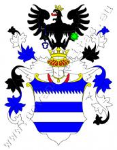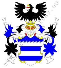 Pětkrát modro-stříbrně dělený štít, jehož dvě horní pole jsou oddělena pilovitým řezem o sedmi zubech. Na štítě stojí korunovaná turnajská přílba s černo-modro-stříbrnými přikrývadly. Klenotem je rostoucí černá orlice.