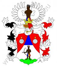 Červený, stříbrnou špicí s modrou hlavou dělený štít. Ve špici stojí na zeleném trojvrší mouřenín s červenou páskou kolem hlavy a sukýnkou ze stříbrných a červených per. Přes pravé rameno má na červeno-bílém pásu zavěšený toulec se šípy s červeným opeřením a v rukou drží napjatý luk se šípem. V obou horních červených polích se vidí hořící granát. Klenotem na korunované turnajské přílbě s červeno-stříbrnými přikrývadly je trup mouřenína ze štítu (bez rukou ale s hlavou) mezi červeno-stříbrně a stříbrno-červeně dělenými křídly.