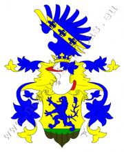 V patě zlatého štítu je proutěný plot a za ním trávník, na němž je modrý lev. Na štítě spočívá korunovaná kolčí přílba s modro – zlatými přikrývadly. Klenotem je modré křídlo se zlatým kosmým břevnem se třemi modrými liliemi.