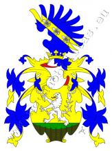 V patě zlatého štítu je proutěný plot a za ním trávník, na němž je stříbrný lev. Na štítě spočívá korunovaná kolčí přílba s modro – zlatými přikrývadly. Klenotem je modré křídlo se zlatým kosmým břevnem se třemi stříbrnými liliemi.