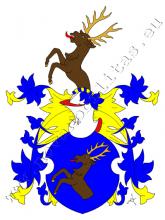 V modrém štítě je polovina jelena přirozených barev s parohy, každým o pěti výsadách. Na štítě spočívá kolčí přílba s modro – zlatými přikrývadly. Klenotem je rostoucí jelen ze štítu.