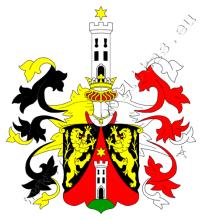 V černém štítě je červená špice, v níž stojí na zeleném pahorku stříbrná věž o třech stínkách prolomená bránou, dvěma okny vedle sebe a nad nimi dvěma střílnami, převýšenou zlatou hvězdou. Po každé straně je špice provázena zlatým dvojocasým lvem s červeným jazykem. Na štítě spočívá korunovaná turnajská přílba s černo – zlatými a červeno – stříbrnými přikrývadly. Klenotem je věž s hvězdou ze štítu.
