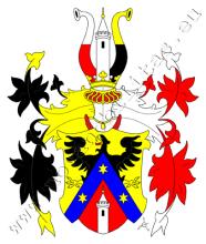 Štít je rozdělen modrou krokví se třemi zlatými hvězdami. Nahoře ve zlatě vyniká z krokve černá orlice se zlatou zbrojí a červeným jazykem, dole je v červeném stříbrná válcovitá, jedním oknem prolomená věž s cimbuřím o pěti stínkách a stříbrnou střechou zakončenou zlatou makovicí se špicí. Na štítě spočívá korunovaná turnajská přílba s černo – zlatými a červeno – stříbrnými přikrývadly. Klenotem jsou dva rohy, pravý dělený stříbrno – červeně, levý zlato – černě, mezi nimi je věž ze štítu.