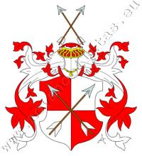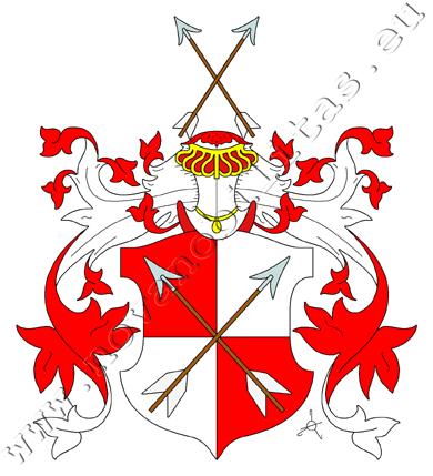 V červeno – stříbrně čtvrceném štítě jsou dva zkřížené šípy s železným hrotem a bílým opeřením. Na štítě spočívá turnajská přílba s červeno – stříbrnými přikrývadly. Klenotem jsou šípy ze štítu.