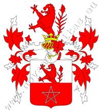 Stříbrno-červeně dělený štít. Nahoře rostoucí červený lev, dole muří noha (pentagram). Na štítě spočívá korunovaná turnajská přílba s červeno–stříbrnými přikrývadly. Klenotem je rostoucí lev ze štítu.