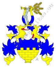 V modrém štítě je zlatá kvádrovaná zeď o třech stínkách. Na štítě spočívá korunovaná kolčí přílba s modro–zlatými přikrývadly. Klenotem jsou dva zlato–modře dělené rohy, mezi nimi obrněná ruka držící v obrněné pěsti sedm ječných klasů.