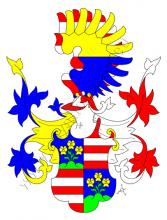 Čtvrcený štít. 1. a 4. v modrém vyrůstají ze zeleného trojvrší tři zlaté violky. 2. a 3. v červeném jsou dvě stříbrná břevna. Na štítě spočívá kolčí přílba s modro - zlatými a červeno - stříbrnými přikrývadly a s točenicí týchž tinktur. Klenotem jsou dvě složená křídla, horní dělené zlato - modře, spodní je červené se třemi  stříbrnými břevny.